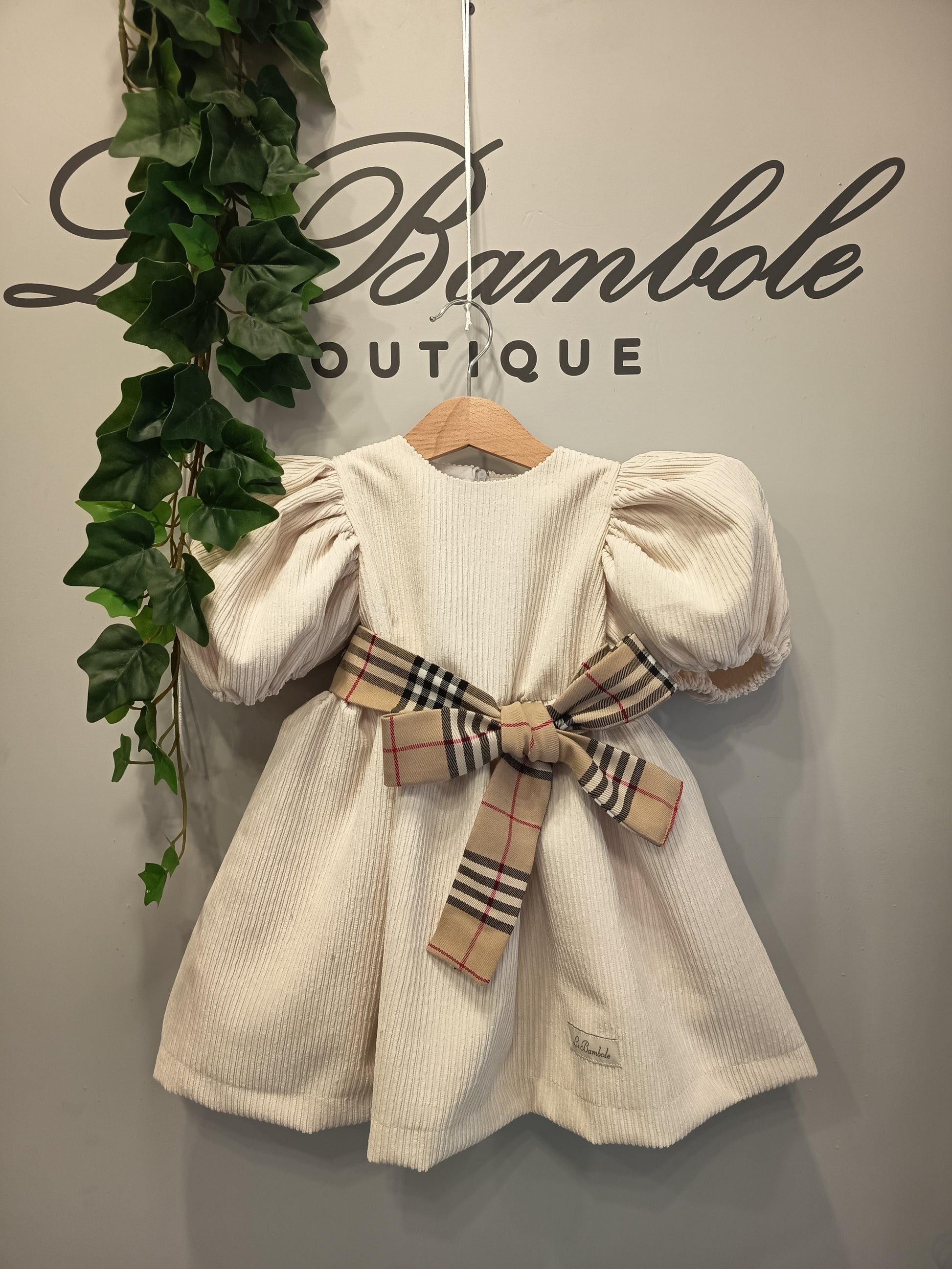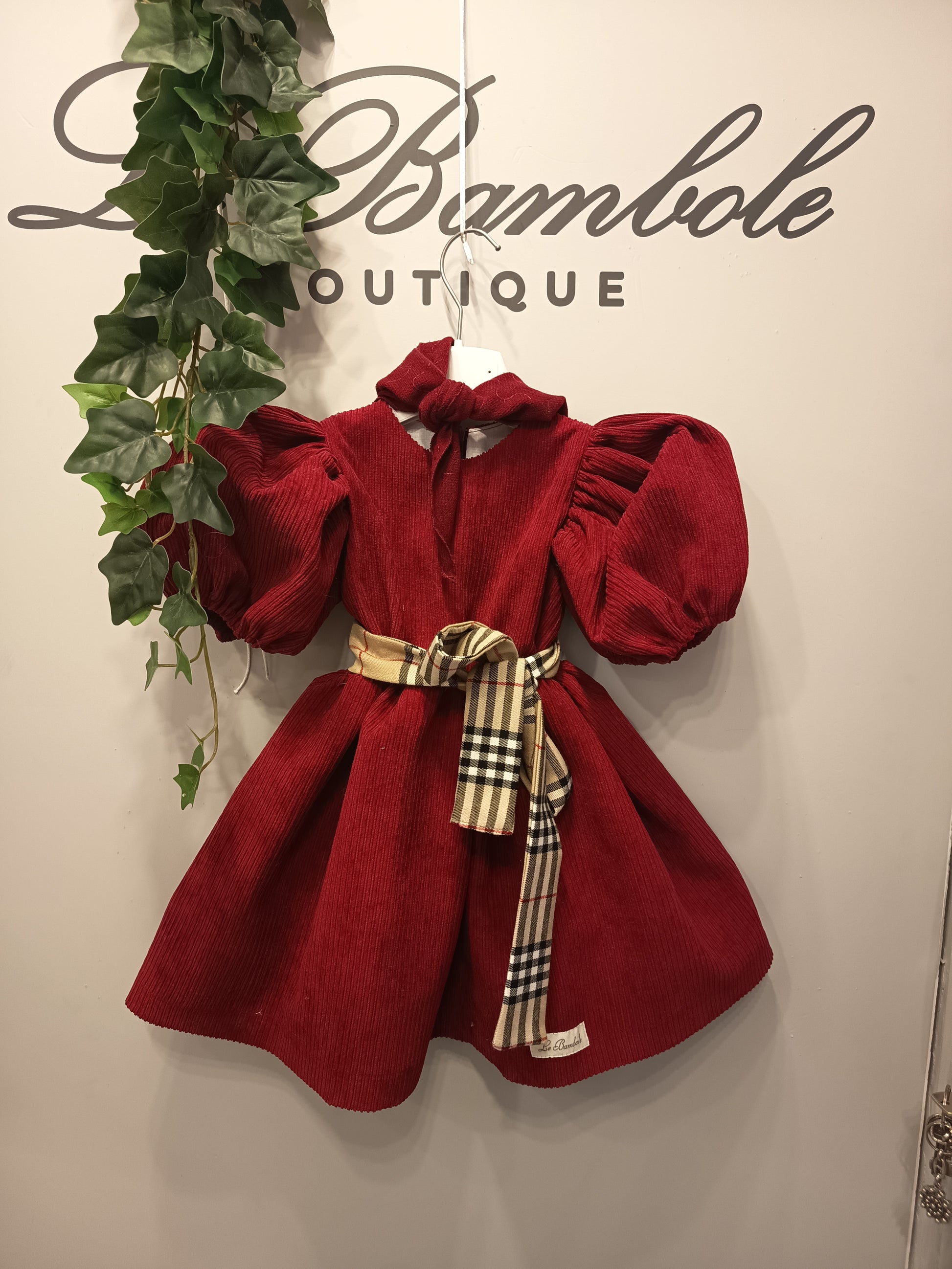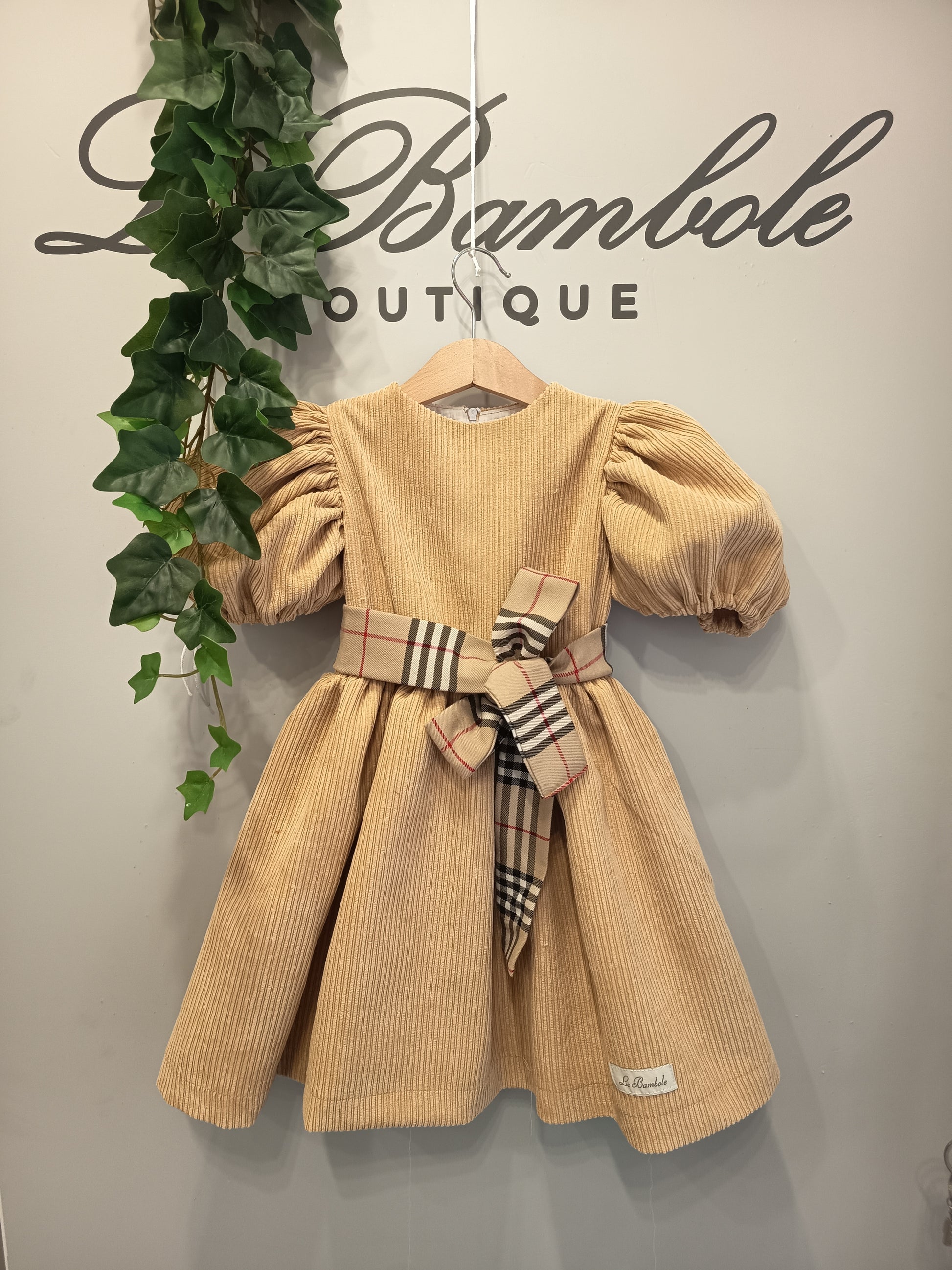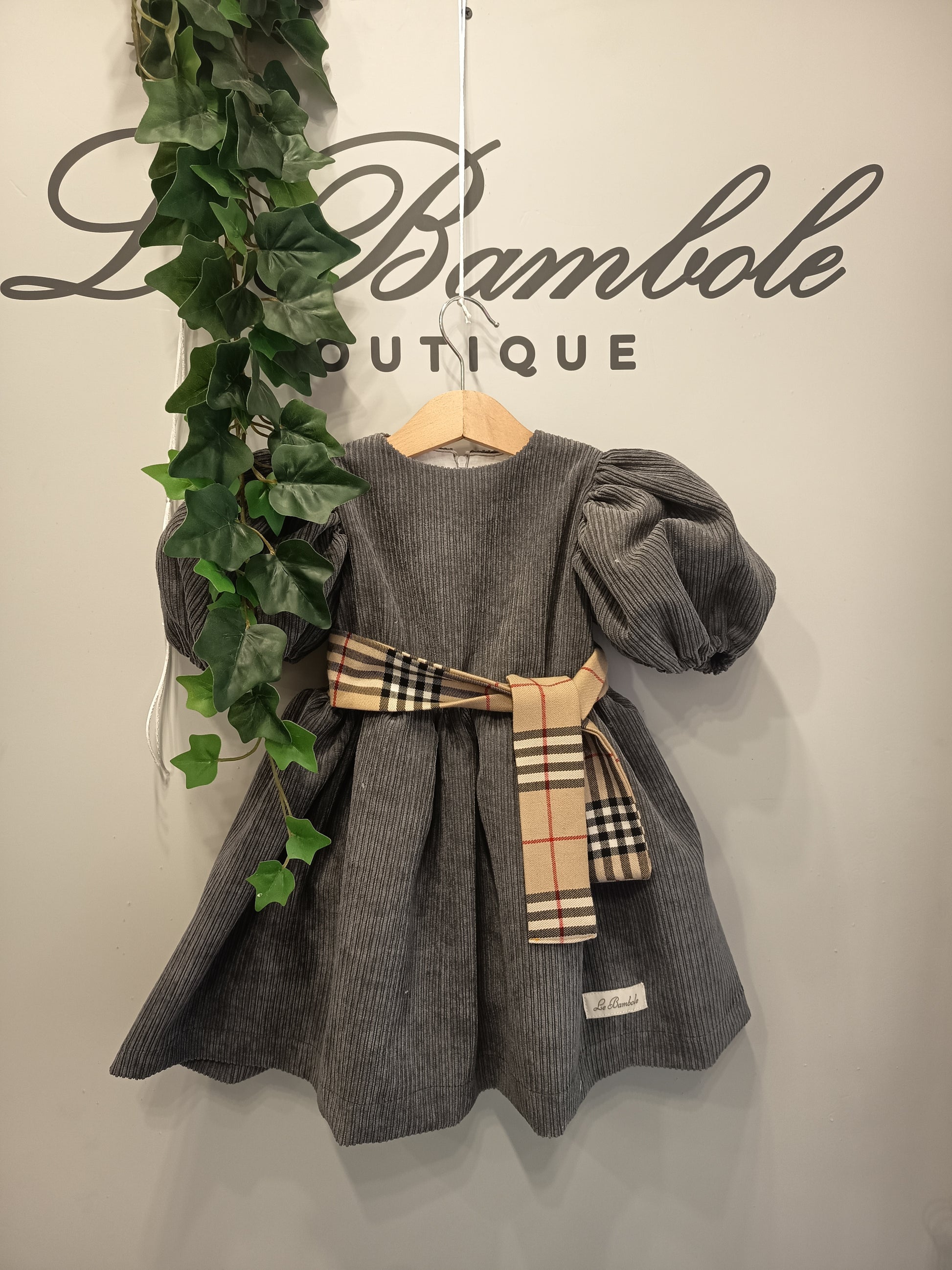 Abito bimba in velluto a coste con dettaglio cintura quadri.