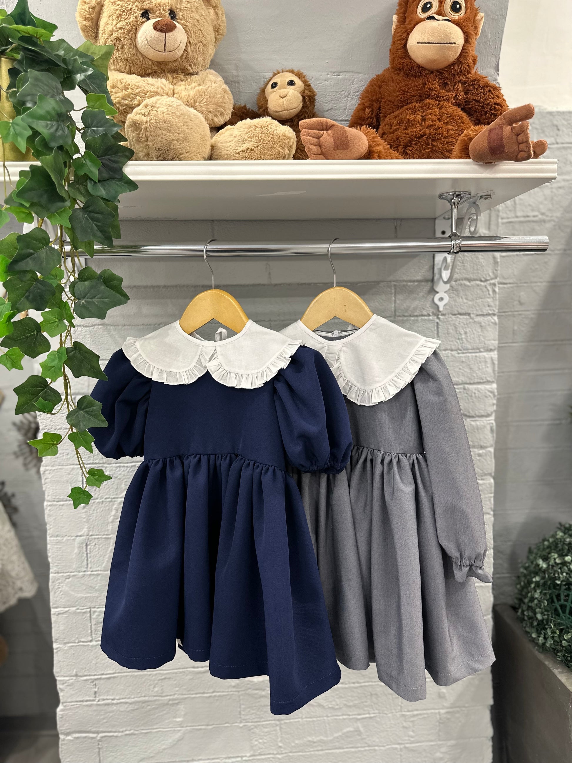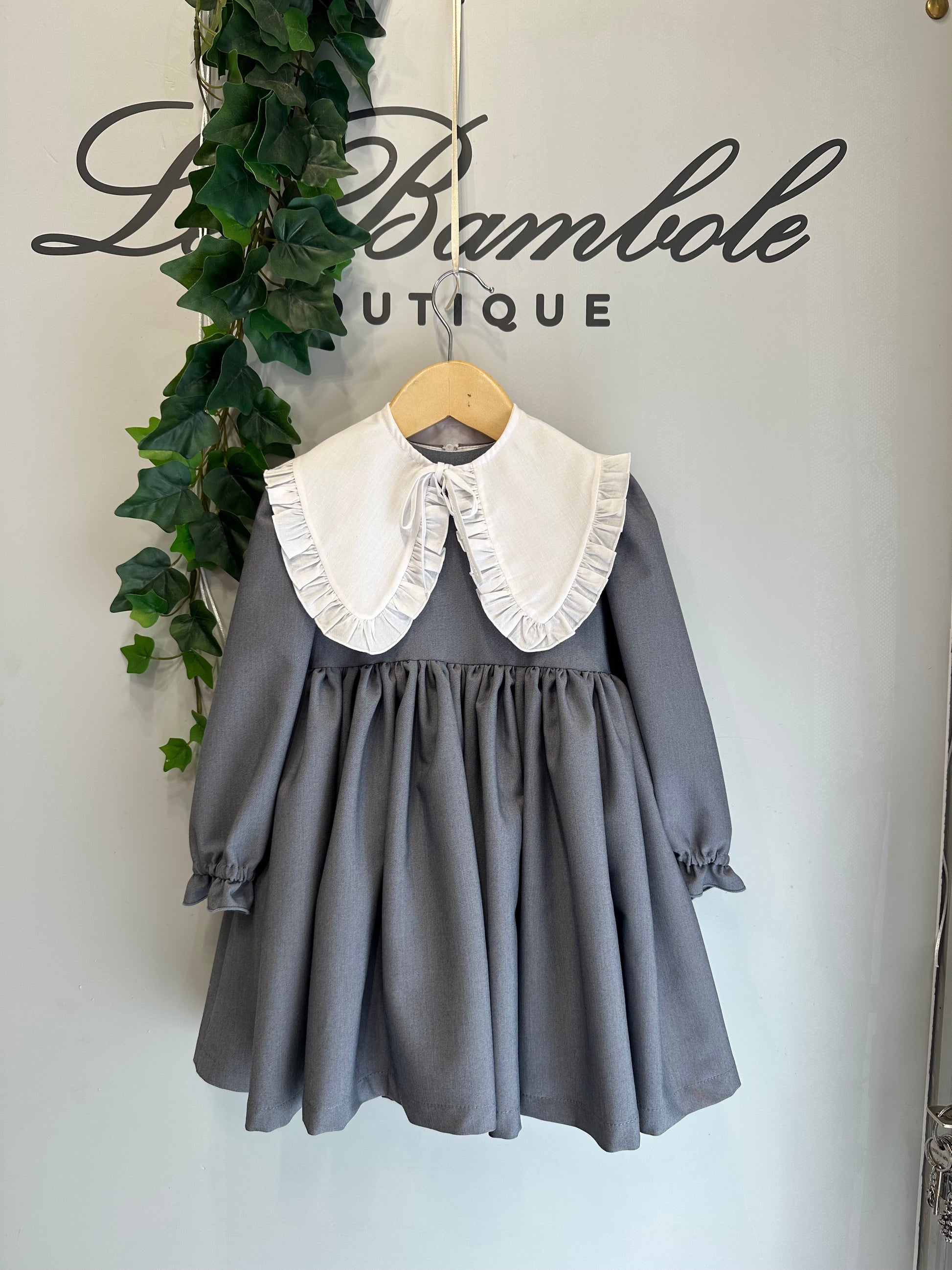 Abito in misto lana con collo in cotone. Possibilità di averlo maniche corte o maniche lunghe
