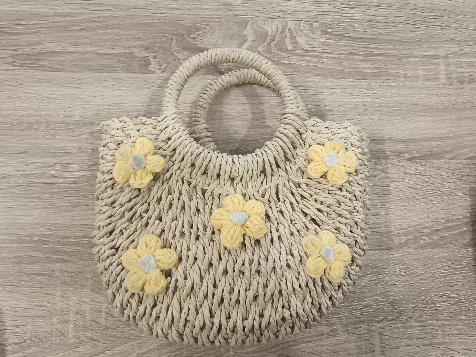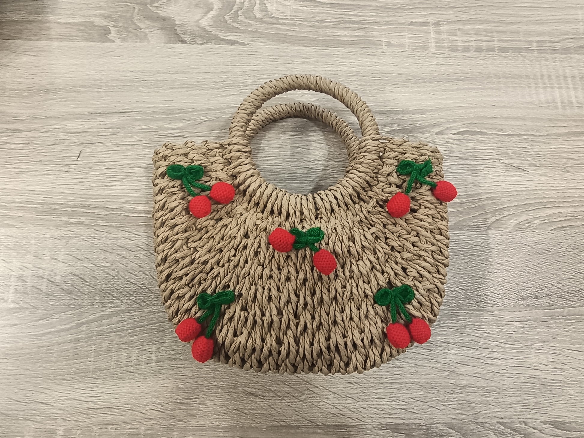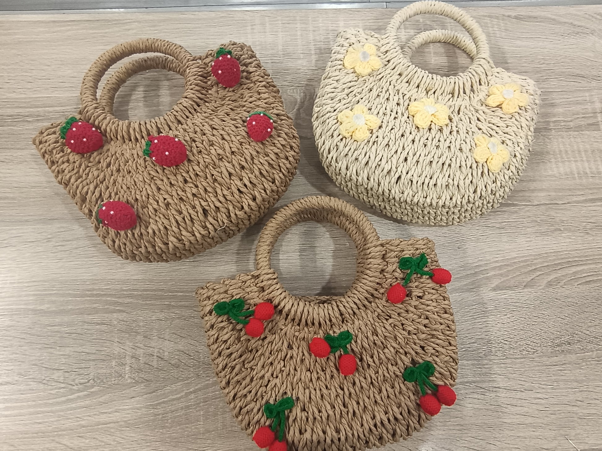 Borsetta bimba in paglia con dettaglio fiori o frutta