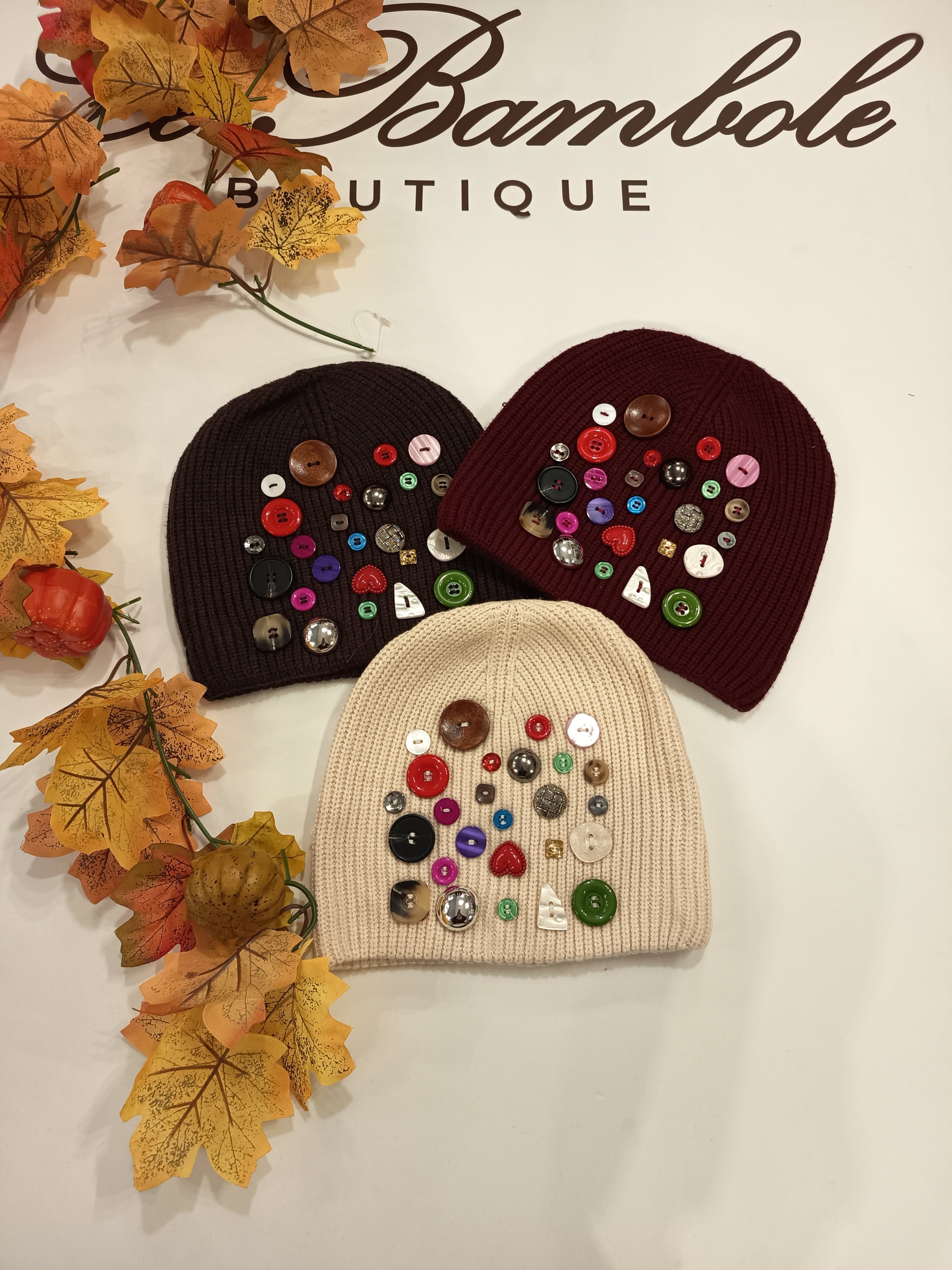 Cappello in lana con dettaglio bottoni.