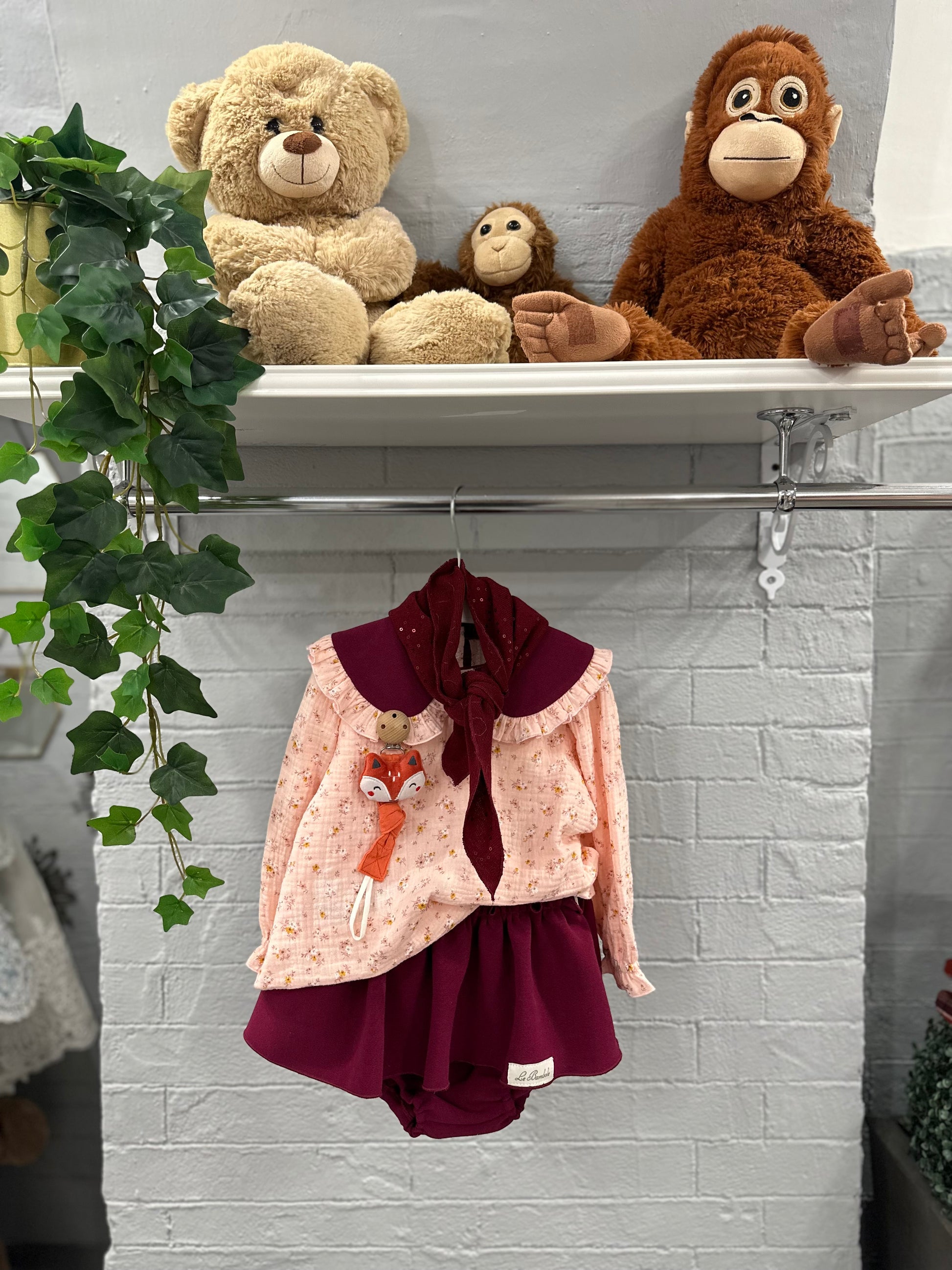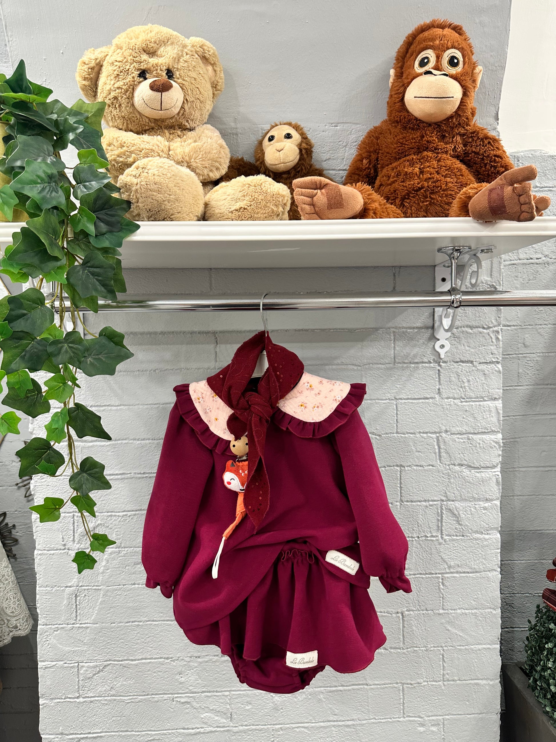 Completo composto da blusa con collo abbinato e bloomers.