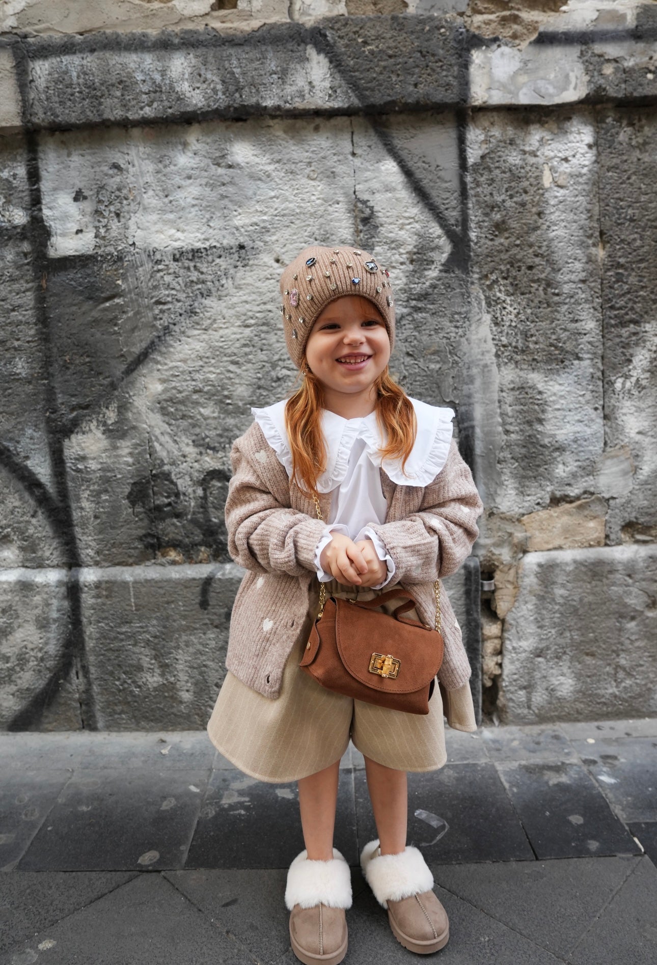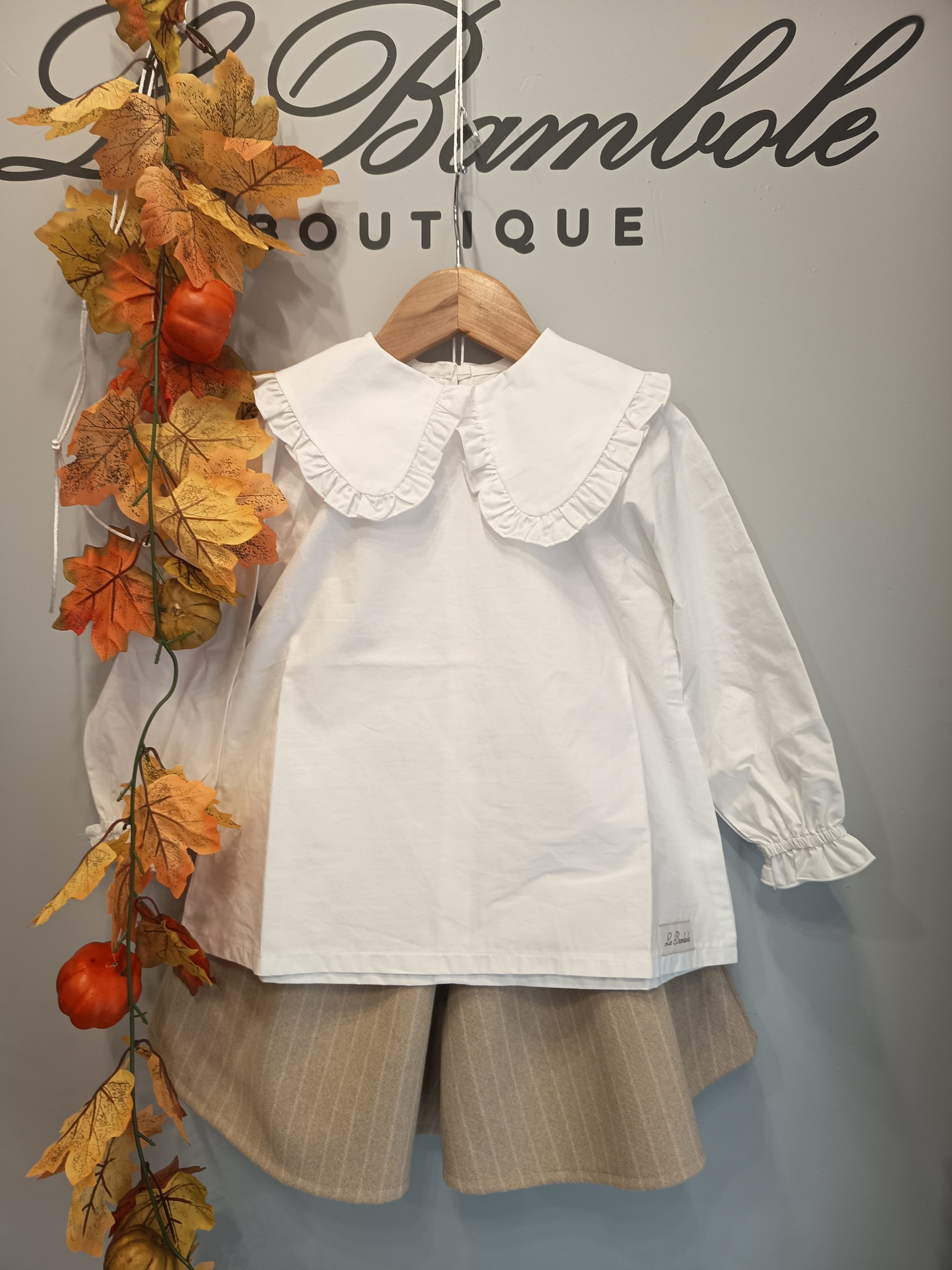 Coordinato composto da camicia in cotone con colletto, e pantaloncini in lana gessato.