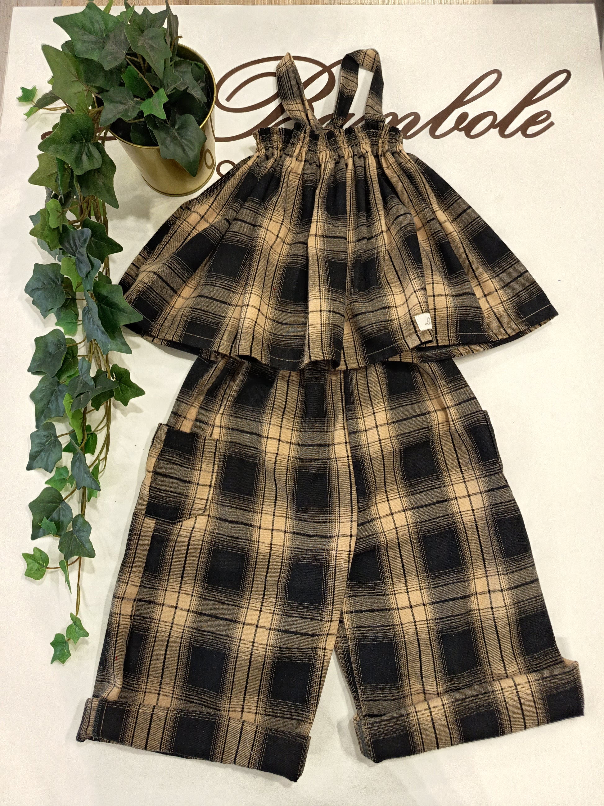 Coordinato composto da top e pantalone palazzo in lana motivo quadri