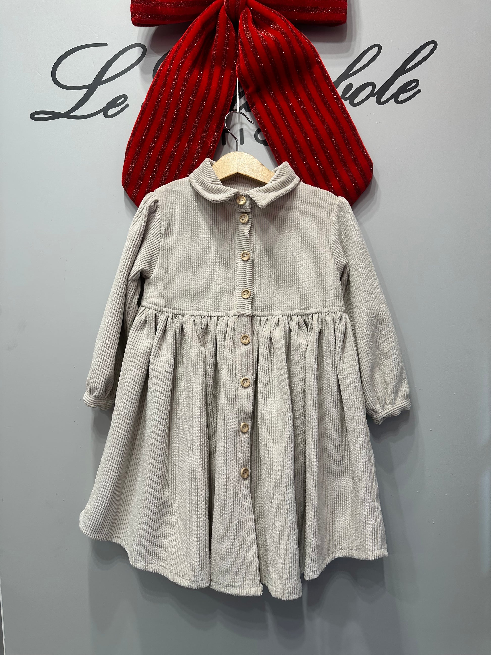 Abito in velluto a coste, bianco. Modello camicia, con bottoni.