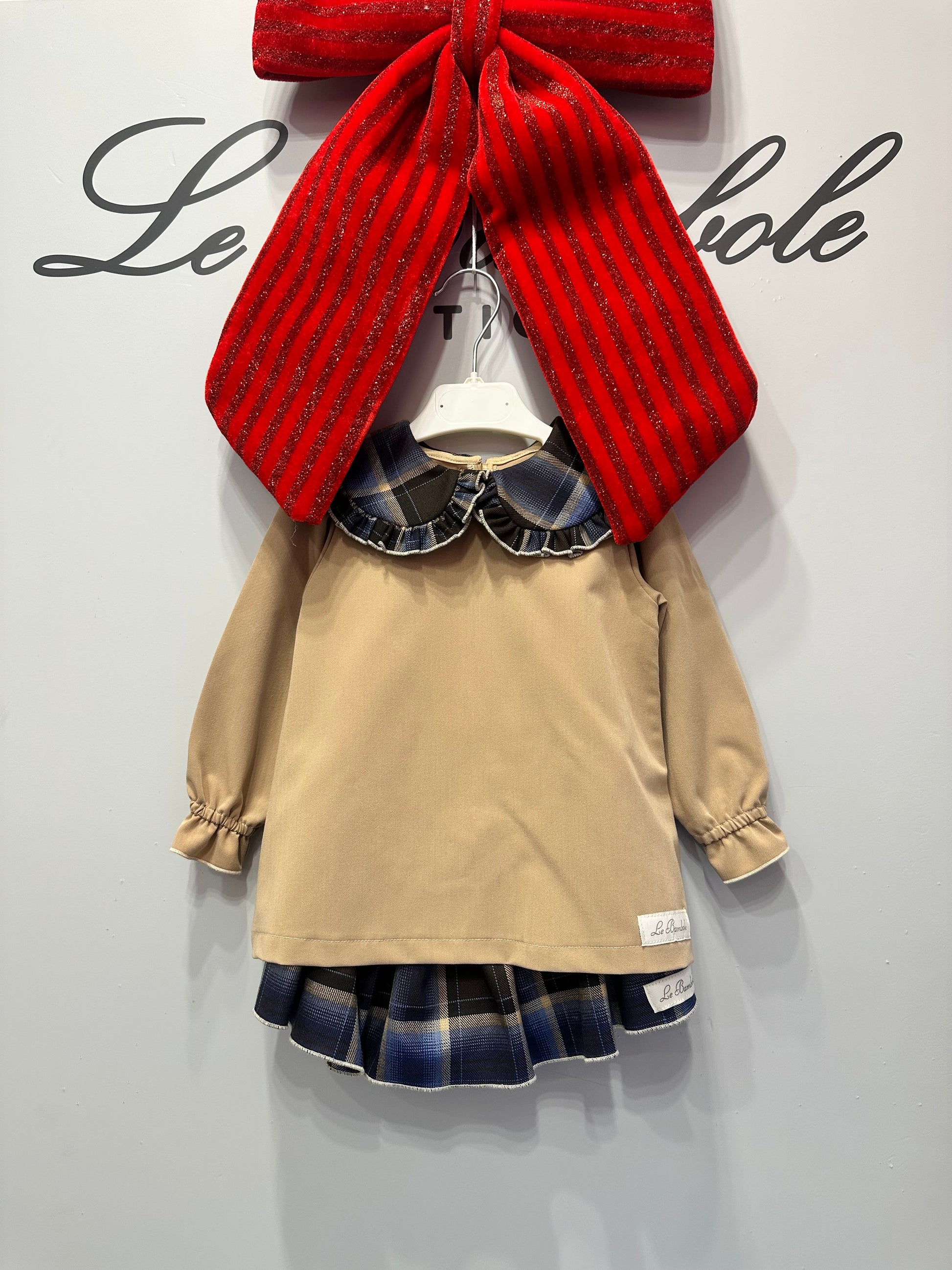 Coordinato composto da blusa e mutanadone in lana, con colletto abbinato.