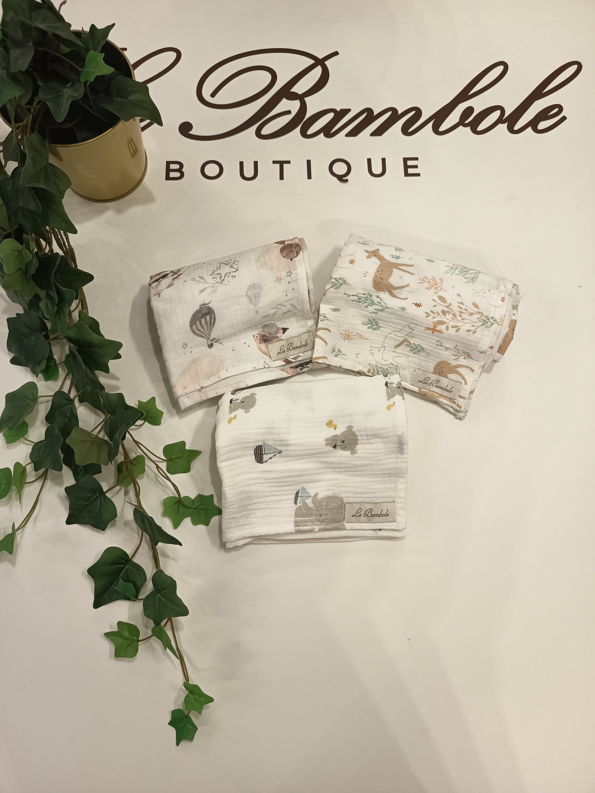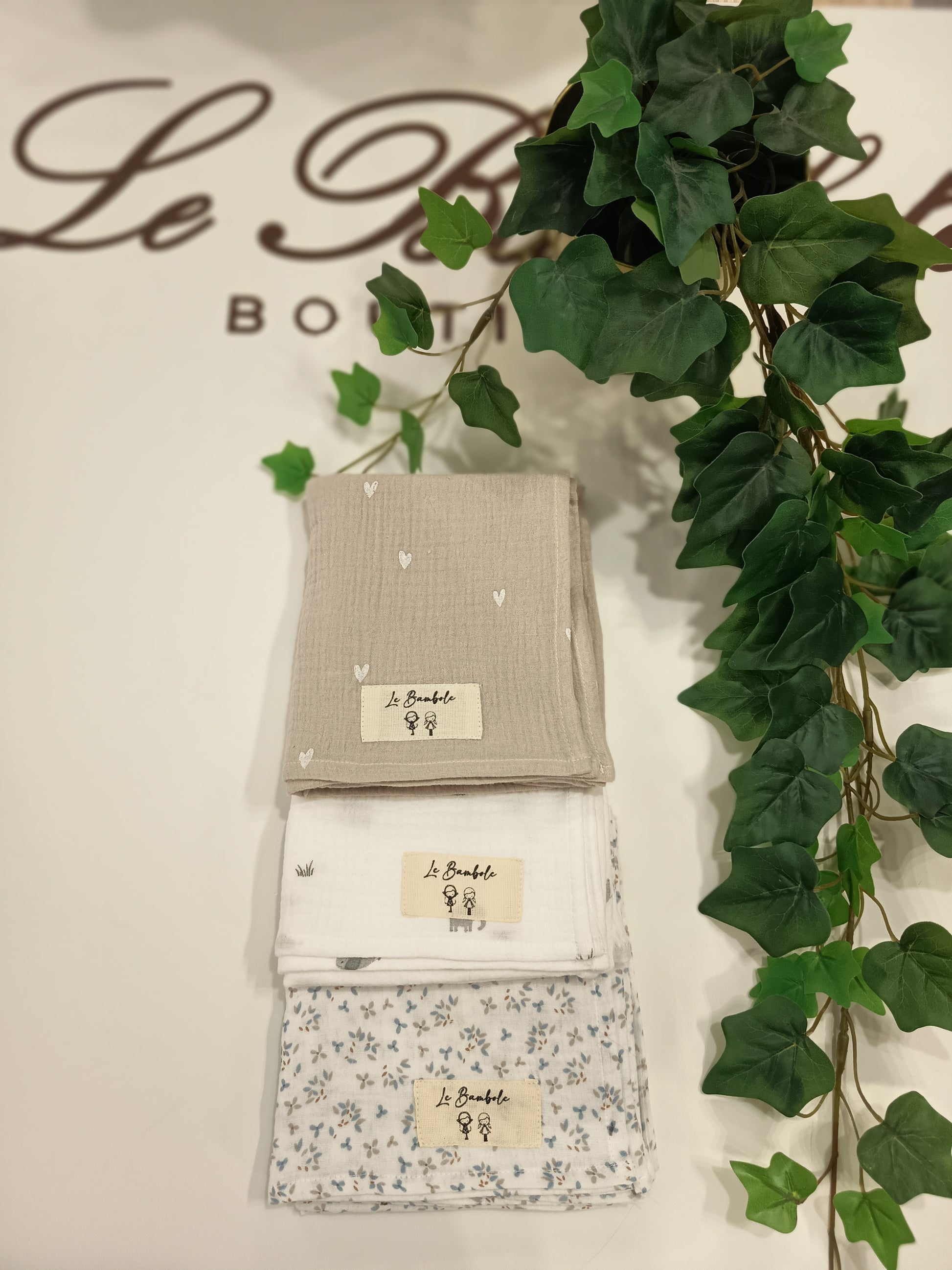 Copertine 75x75 in mussola di garza, un must per il corredino del bambino/a.