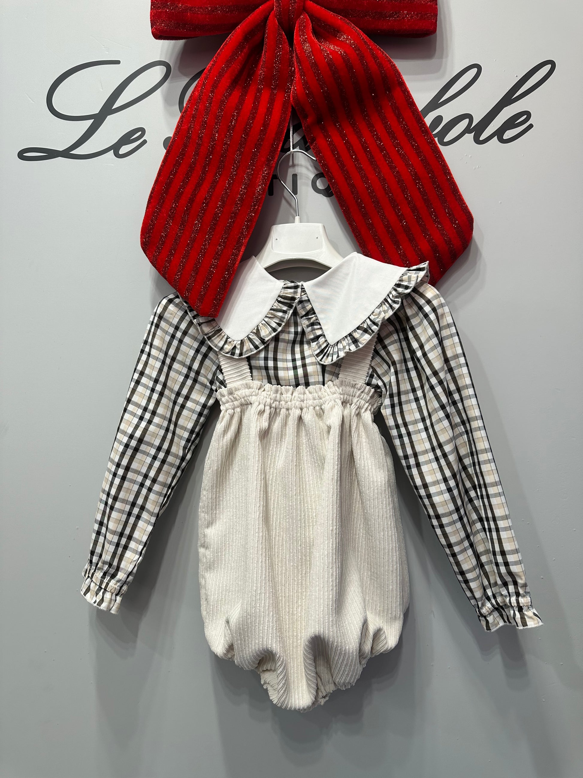 Salopette composta da camicia in cotone e salopette in velluto a coste.